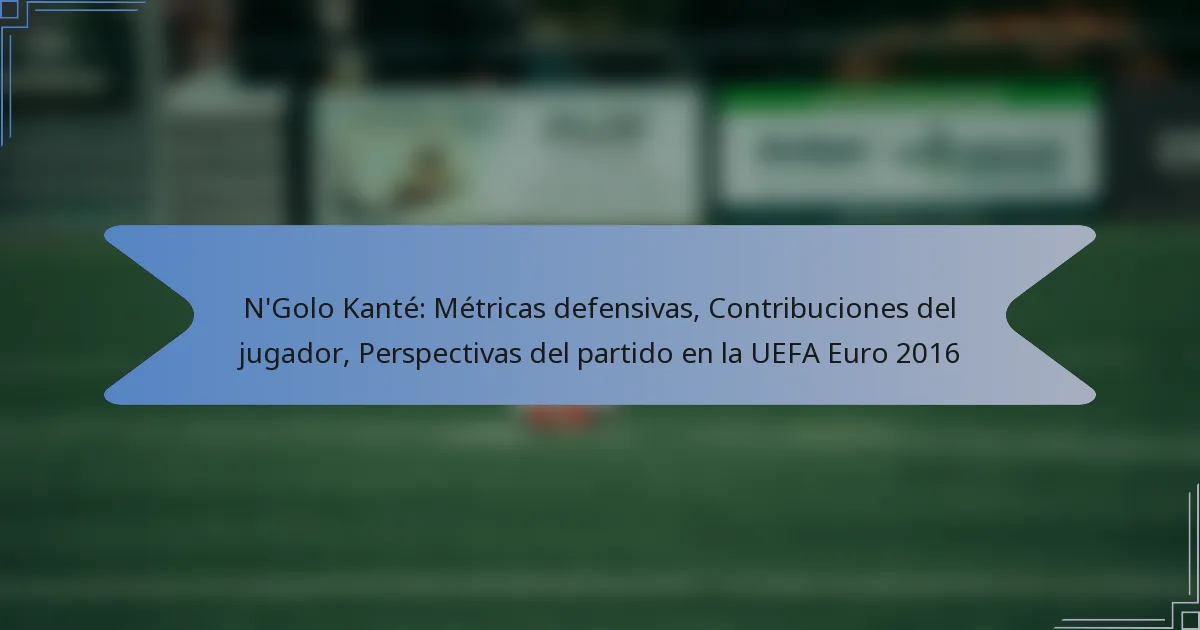 Las métricas defensivas de N’Golo Kanté durante la UEFA Euro 2016 lo posicionaron entre los mejores jugadores del torneo. Su capacidad para interrumpir los ataques rivales a través de tackles e intercepciones fue crucial para el rendimiento de Francia, mostrando su impacto en el campo en comparación con sus pares.